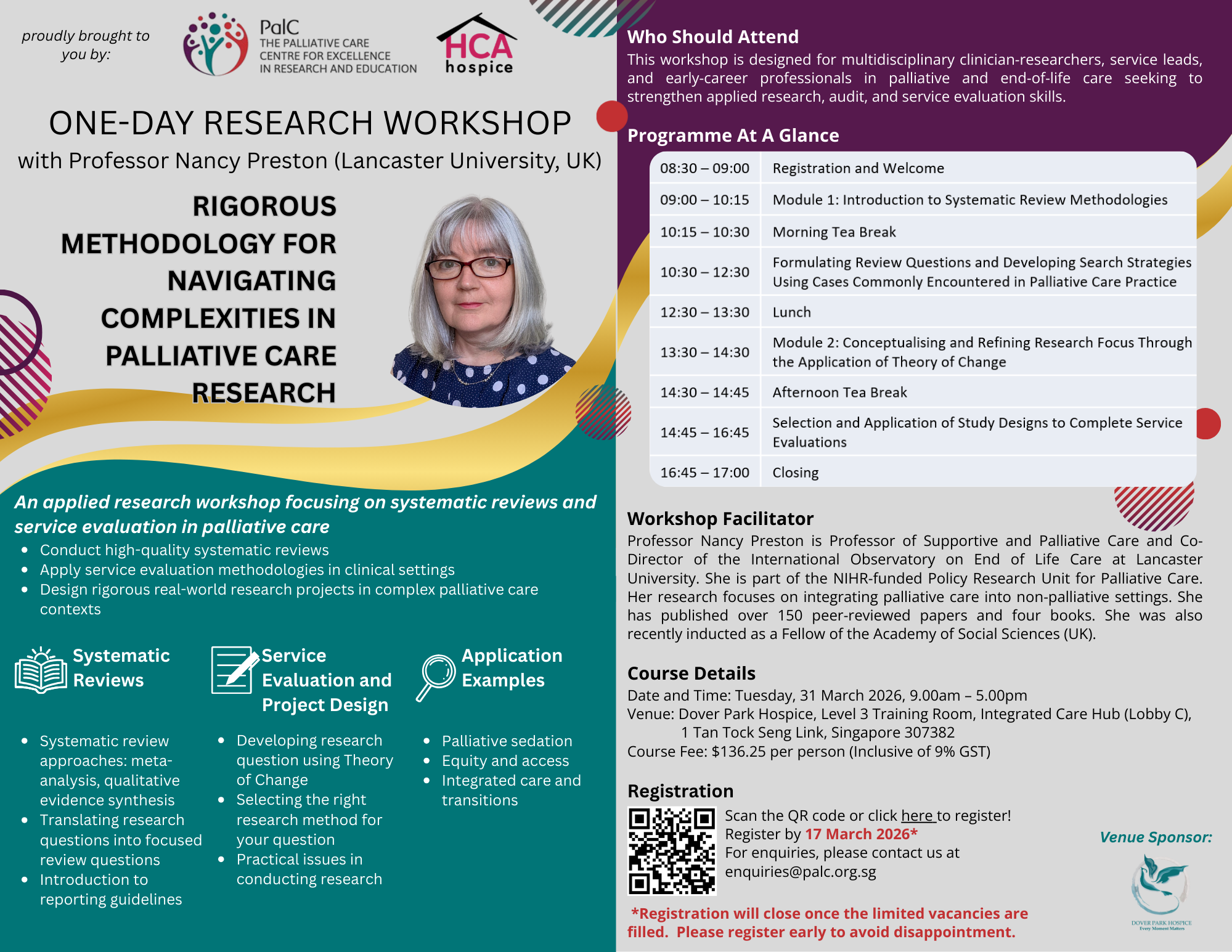 | 9th Singapore Palliative Care Conference (SPCC) | Date | 16 to 19 Apr 2026 |